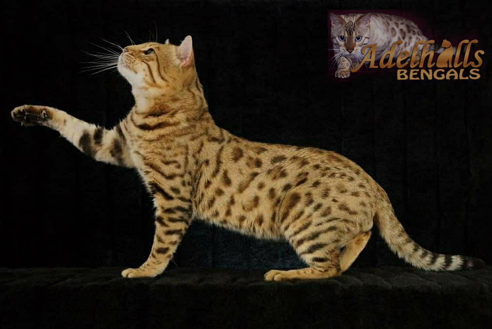 Bengals are also required to have spotted tummies. Dedicated breeders are striving to duplicate the white belly, inside of legs, throat, and neck of the wild Asian Leopard Cat, while, at the same time, keep the beautiful and vibrant body color of the Bengal.