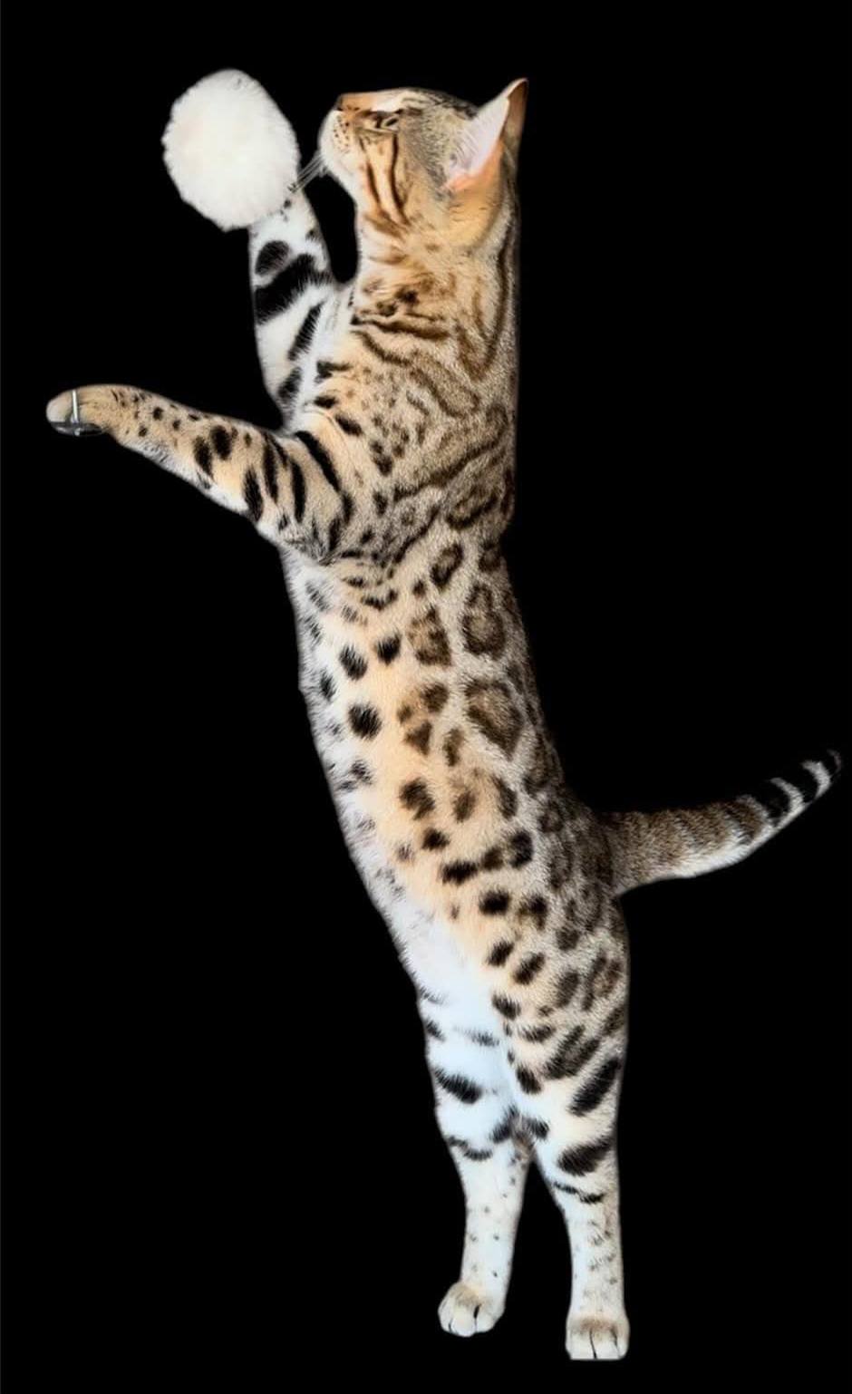 Tank is a new addition to our program for our development of the Cashmere lines. He brings the LongHair bengal gene down from his grand sire Rainforest Taro Hunter IMP USA, so that we have another unrelated Longhair line for the development of the Cashmeres. Tank is a BIG healthy boy with a wonderful temperament, good profile and chin, ultra soft coat and also carries the recessive SLP (Seal Lynx Point) snow gene. We are looking forward to not only brown Cashmeres in the future but also snow cashmeres! HCM heart scanned NORMAL 6-MAR-2024 @1yr 7mo of age.